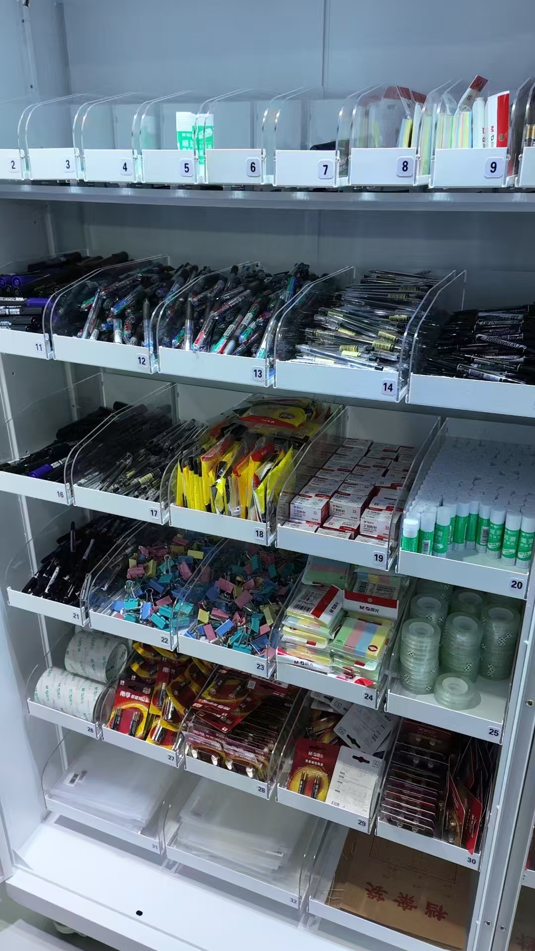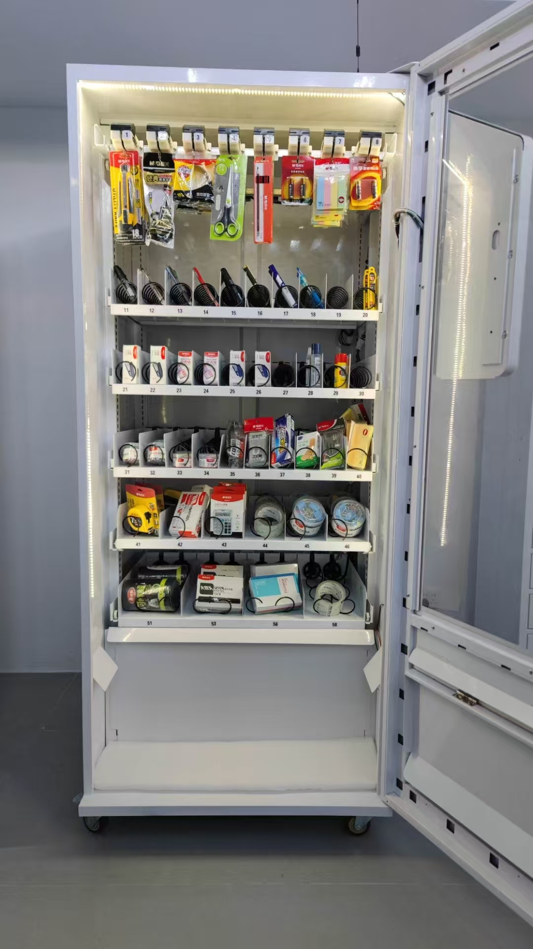 Die Büromaterialinventarlösung (TVM-1900) soll die Verfügbarkeit von Büromaterialien rund um die Uhr gewährleisten, Ihr Team an neue flexible Arbeitsmodelle anpassen und die Effizienz steigern.Multi-Dispense-Lösung, die für verschiedene Büromaterialien von klein bis groß in verschiedenen Verpackungen geeignet ist.